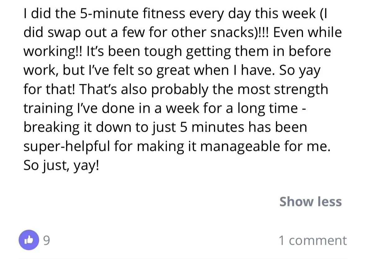 It’s letting go of the all-or-nothing and realizing that little bits do add up over time - even just 5 minutes is enough to start to gain momentum.