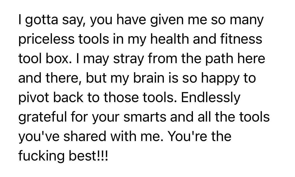 16 weeks to break the all-or-nothing cycle of food and fitness, and find the things that work FOR YOU that are sustainable and enjoyable.